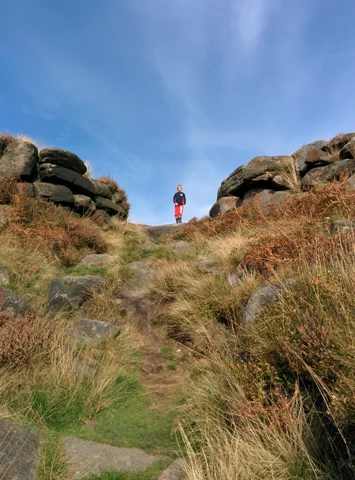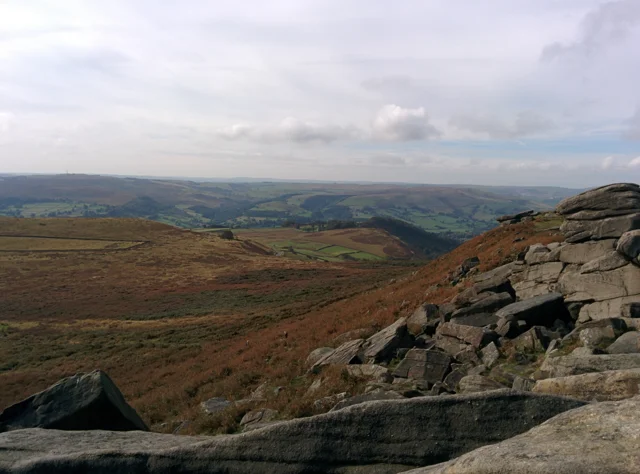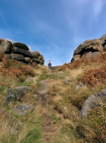 A family walk in the Peak District on a rather fine mid-autumn day after what looks like a relatively dry summer.