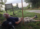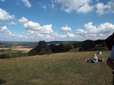 Memory of getting on the train; just! I do remember the nettles and brambles with your brother leading the way to clear a path for the inappropriately dressed one [ed: me]. For me the killer was the last stretch walking over what I remember as a ploughed field followed by the pub not being open but it did have roosting red kites opposite. I think I lost the will to continue but thanks to your encouragement (Just get on and do it!) we did indeed make it. I remember a view of Didcot from the monument overlooking Princes Risborough (memory may be dodgy) after walking up a fairly steep hill. I remember the start at Ivinghoe Beacon where we met a group who had just completed walking the Ridgeway in sections over time and asked if you could take photographs. They had walked from West to East and I remembered them towards the end when we faced into wind and rain. There was a stop in Goring for a pharmacy but I can’t remember the reason: blisters? The stack of hay bales is where we managed to get some shade from the sun whilst discussing organ workshops.