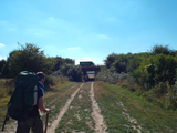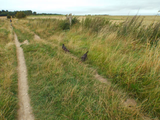 A pair of galloping horses—this is, after all, Lambourn Down which is racehorse country. A tap placed in memory of a 14 year old Peter Wren who loved the area, a useful thing for those camping the route as it’s dry up on a chalk down. A sign to the Blowing Stone which we unfortunately did not follow to try it out.