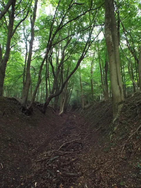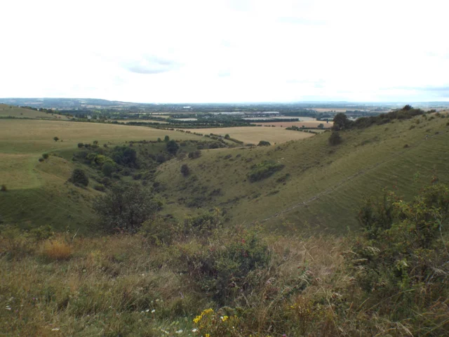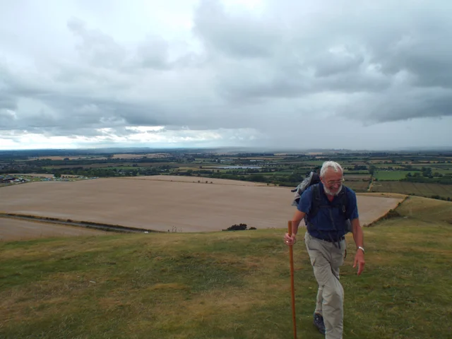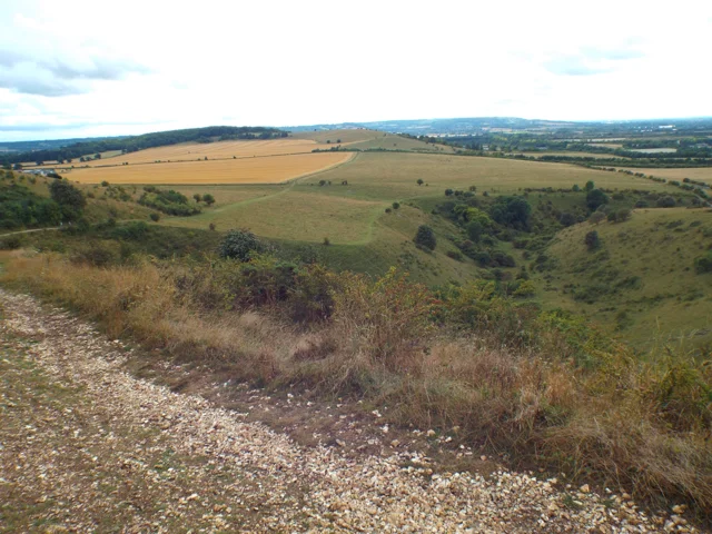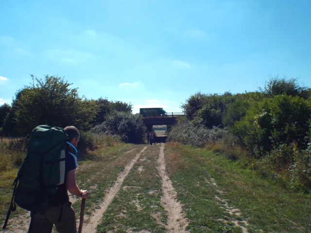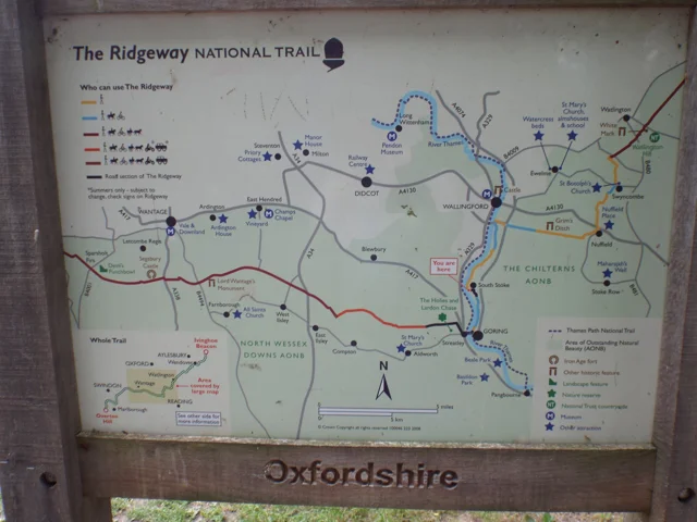 The swifts. Drizzle getting up toward Liddington Castle after the M4, hard flint underfoot approaching Ogbourne St George (that was a long day, over 20 miles?). Long uphill through a wood after passing a pub with water for walkers (looking at a map, maybe by Princes Risborough), opening up to a clear side of a hill with first view of Didcot. Sitting in the shade under a haystack. Walking up a sloping bridge over a road (A41?) far beneath. Stopping for a break by some old farm machinery (a plough?). Dad giving me the impression he didn’t believe me when I started going on about miles passing more easily when distracted, then me getting left behind as the two of you nattered off ahead (maybe around the Chinnor quarries). Walking down Grim’s Ditch just before Goring and Streatley, with a sense of meandering coming to an end. Not really knowing what to do when we finished. Walkers on the last day heading the other way, probably wild camping, with packs bigger than they were. Not knowing I had to bring a code with me to get the train tickets, buying new tickets at the office and then leaving my camera behind. Made it though.