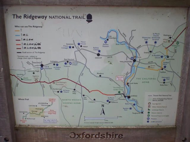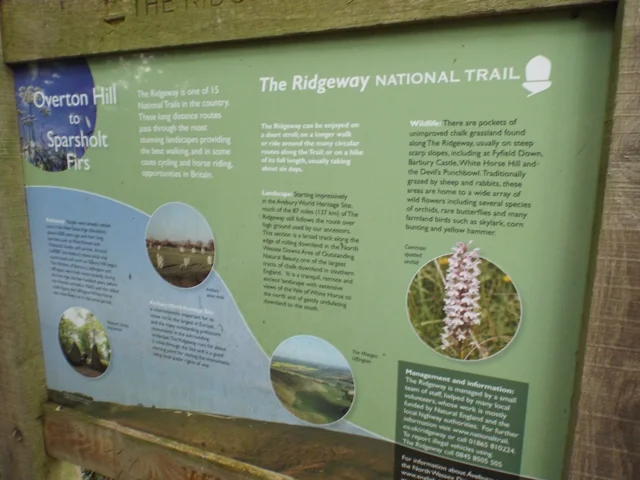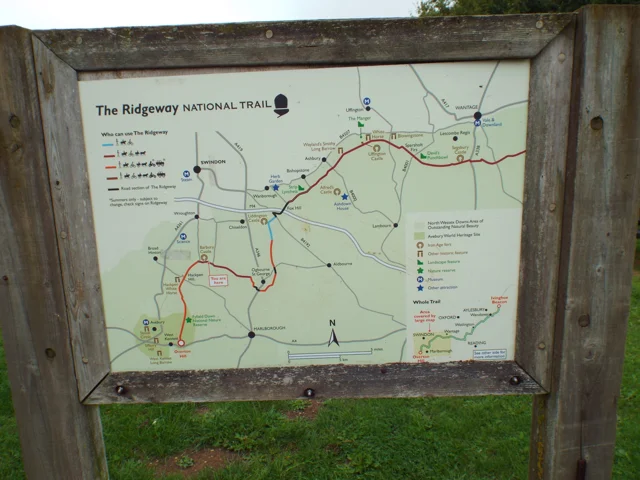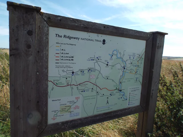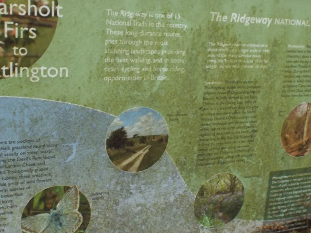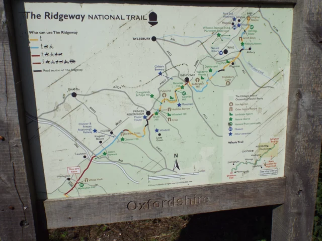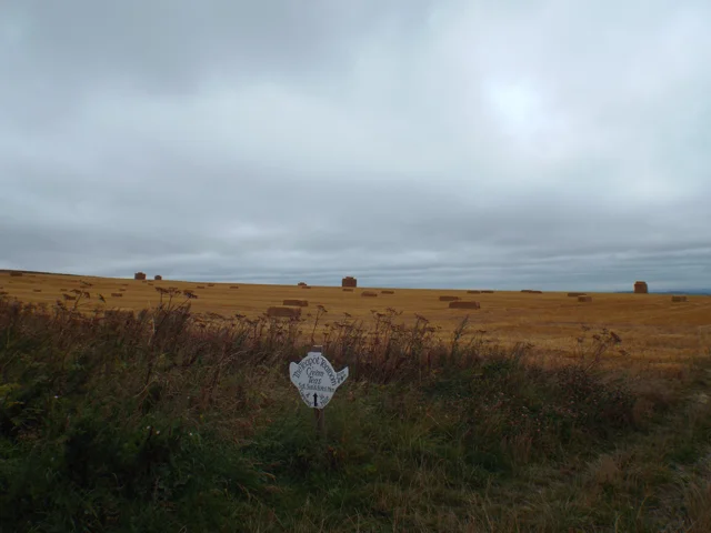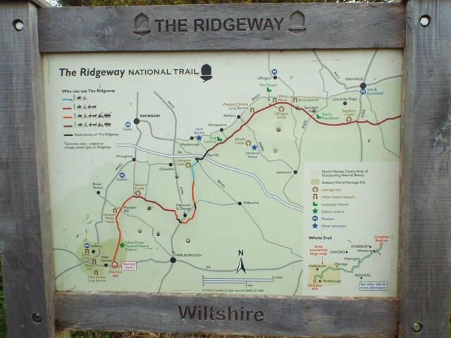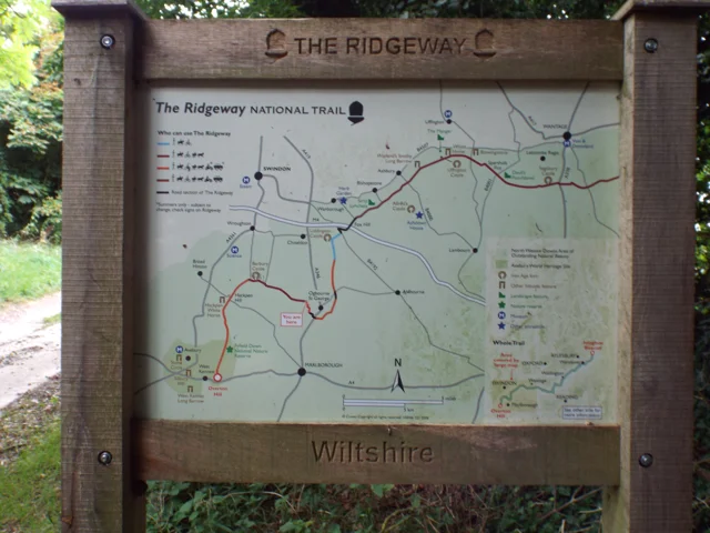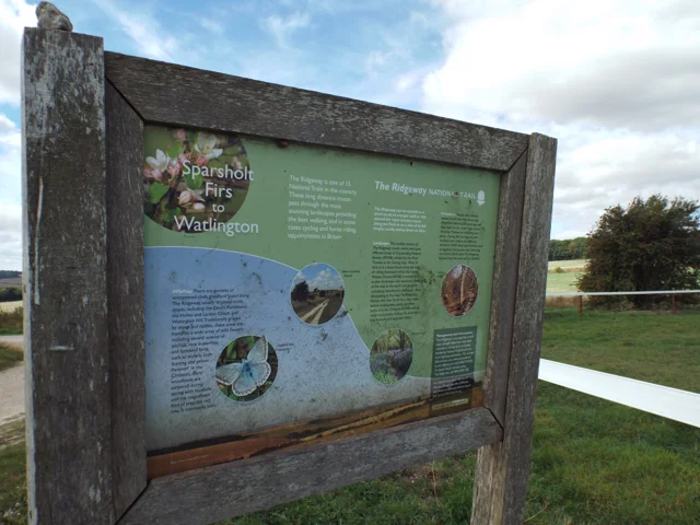 A pair of galloping horses—this is, after all, Lambourn Down which is racehorse country. A tap placed in memory of a 14 year old Peter Wren who loved the area, a useful thing for those camping the route as it’s dry up on a chalk down. A sign to the Blowing Stone which we unfortunately did not follow to try it out.