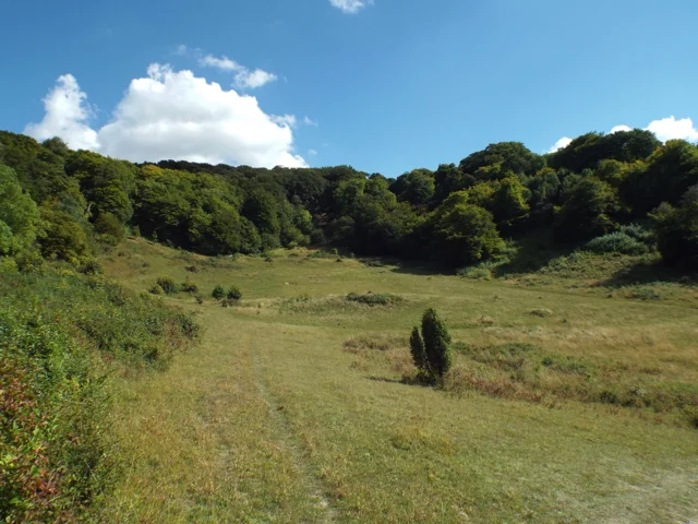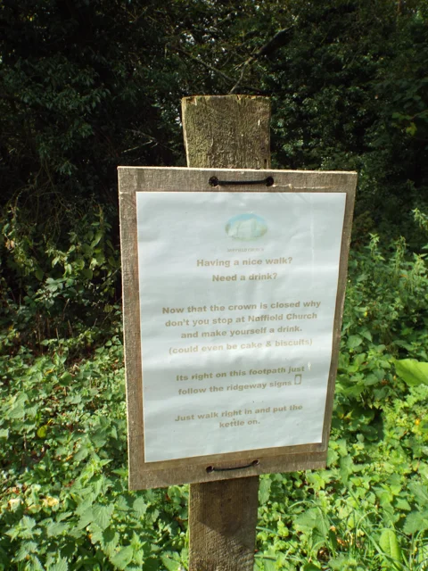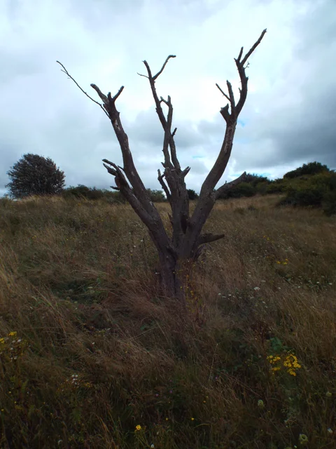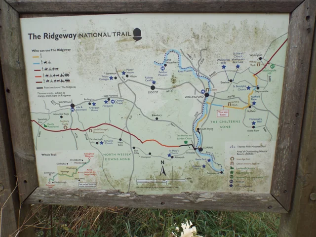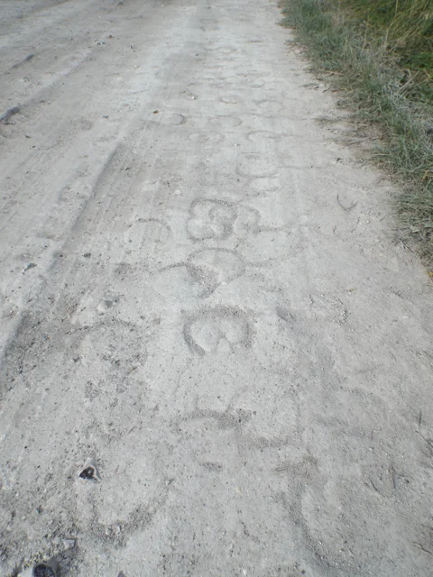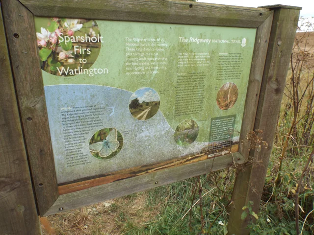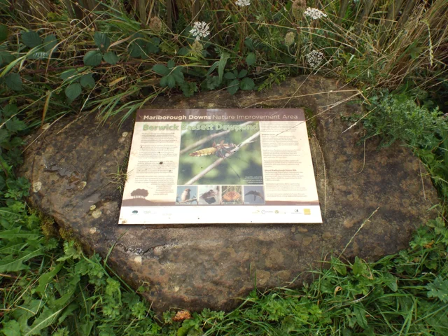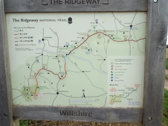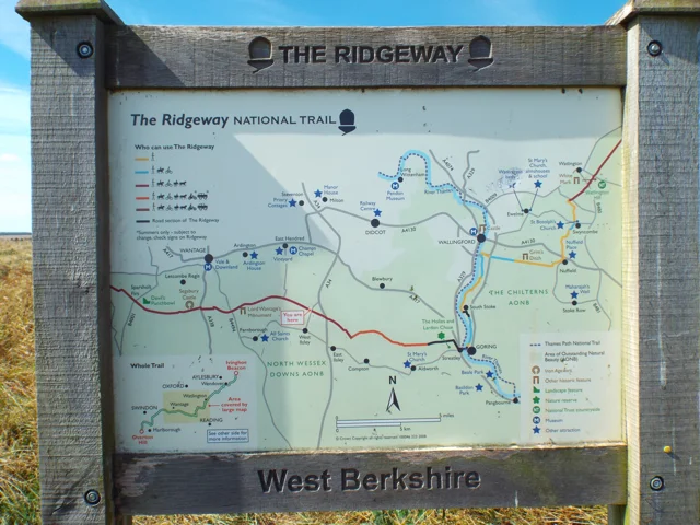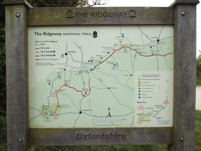 A pair of galloping horses—this is, after all, Lambourn Down which is racehorse country. A tap placed in memory of a 14 year old Peter Wren who loved the area, a useful thing for those camping the route as it’s dry up on a chalk down. A sign to the Blowing Stone which we unfortunately did not follow to try it out.
