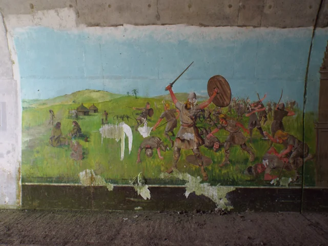 September began with our Crossing of the Thames. Rolling hills with some tightly rolled, and faintly sinister hay bales on the ridge. They were coming for us, I swear. More views of Didcot Power Station. Another main road under-crossing, this time under the A34—containing part of the Oxford ringroad, which must be one of my least favourite roads—via a curiously brightly decorated tunnel.