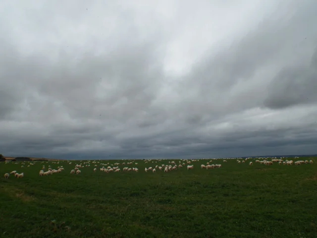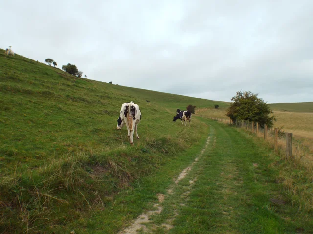 The final stretch. You more or less know the drill by now: downs and views, but with increasingly cloudy skies. Slightly curiously, cows rather than sheep for some reason. Also, some extremely swift3 swallows and some light rain.