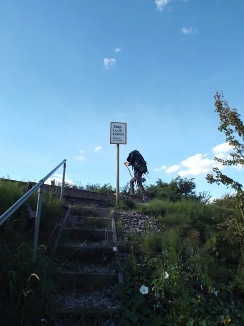The swifts. Drizzle getting up toward Liddington Castle after the M4, hard flint underfoot approaching Ogbourne St George (that was a long day, over 20 miles?). Long uphill through a wood after passing a pub with water for walkers (looking at a map, maybe by Princes Risborough), opening up to a clear side of a hill with first view of Didcot. Sitting in the shade under a haystack. Walking up a sloping bridge over a road (A41?) far beneath. Stopping for a break by some old farm machinery (a plough?). Dad giving me the impression he didn’t believe me when I started going on about miles passing more easily when distracted, then me getting left behind as the two of you nattered off ahead (maybe around the Chinnor quarries). Walking down Grim’s Ditch just before Goring and Streatley, with a sense of meandering coming to an end. Not really knowing what to do when we finished. Walkers on the last day heading the other way, probably wild camping, with packs bigger than they were. Not knowing I had to bring a code with me to get the train tickets, buying new tickets at the office and then leaving my camera behind. Made it though.