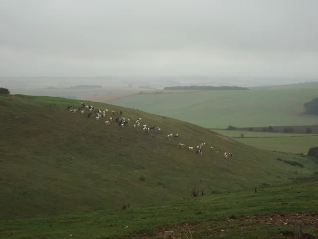 The final stretch. You more or less know the drill by now: downs and views, but with increasingly cloudy skies. Slightly curiously, cows rather than sheep for some reason. Also, some extremely swift3 swallows and some light rain.
